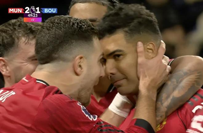此役主场对阵伯恩茅斯,卡塞米罗在上半场补时阶段通过角球机会破门,帮助曼联取得2-1领先。